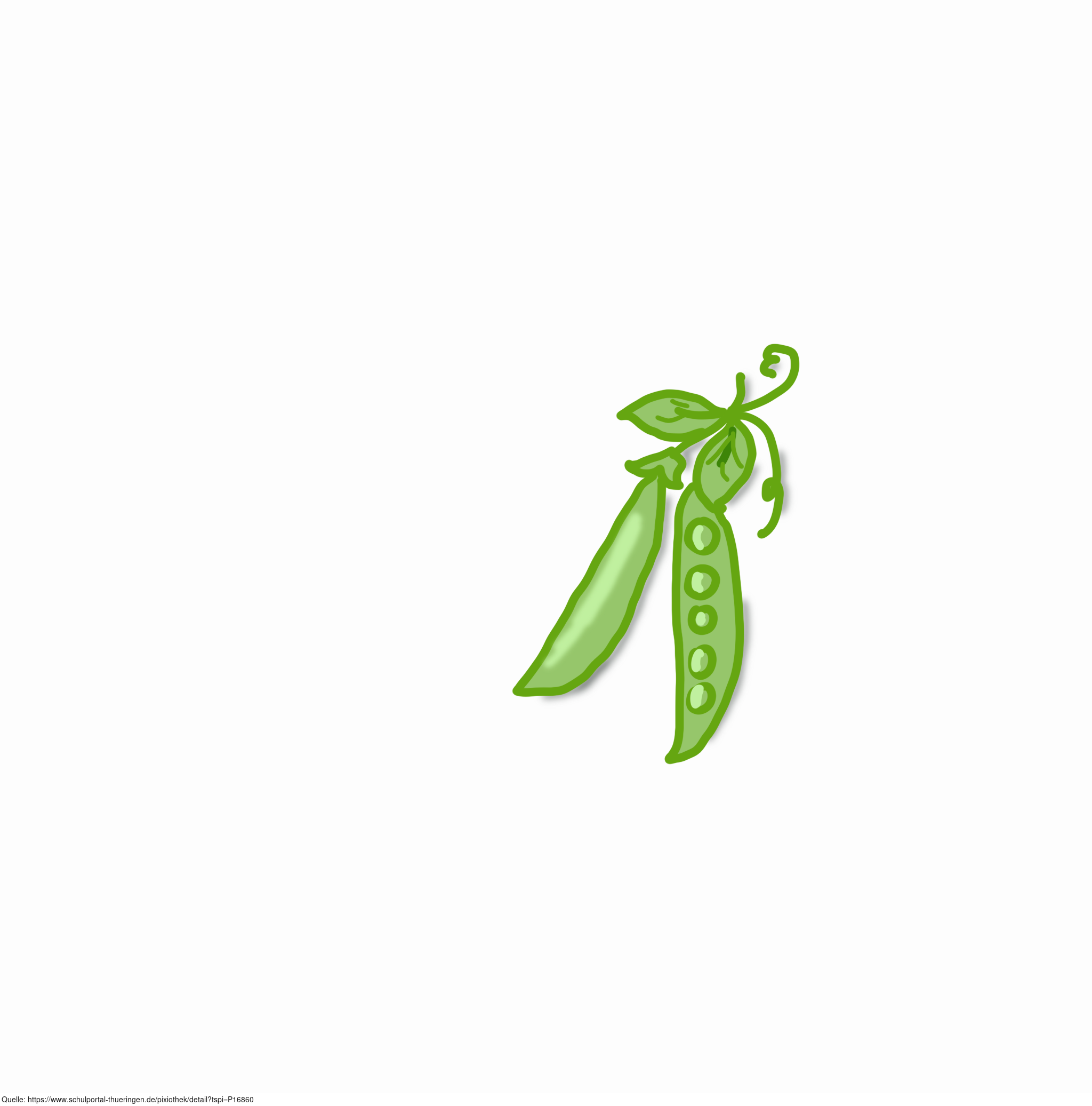 Das Bild zeigt gezeichnete Erbsen in der Schote. Das Bild ist unter CC0 lizenziert und kann somit frei verwendet werden.