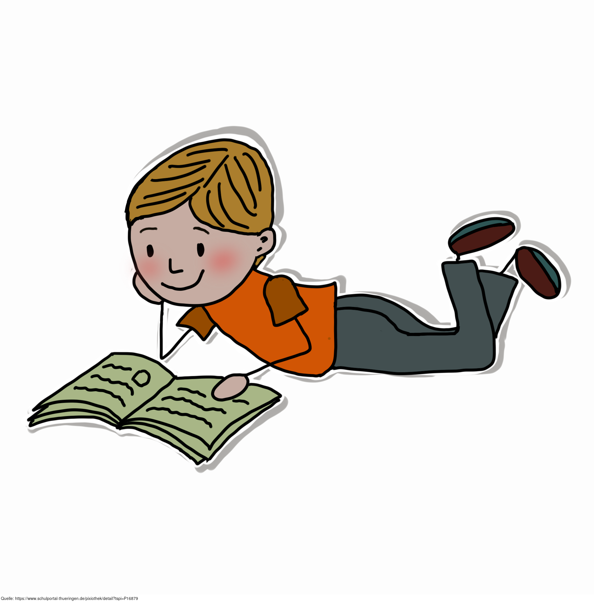 Das gezeichnete Bild zeigt ein Kind beim Lesen. Das Bild ist unter CC0 lizenziert und kann somit frei verwendet werden.