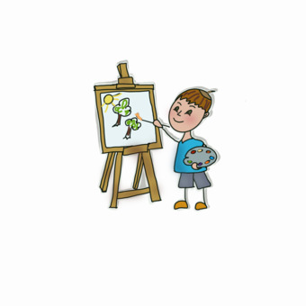Das gezeichnete Bild zeigt eine Person beim Malen an einer Staffelei. Das Bild ist unter CC0 lizenziert und kann somit frei verwendet werden.