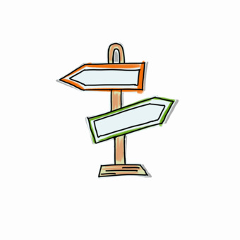 Das Bild zeigt einen gezeichneten Wegweiser. Das Bild ist unter CC0 lizenziert und kann somit frei verwendet werden.