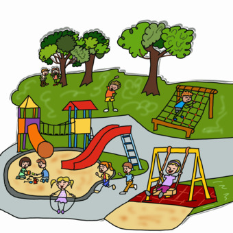 Das Bild zeigt einen gezeichneten Spielplatz. Das Bild ist unter CC0 lizenziert und kann somit frei verwendet werden.
