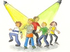 Das gezeichnete Bild zeigt Jugendliche oder Kinder beim Tanzen. Das Bild ist unter CC0 lizenziert und kann somit frei verwendet werden.