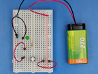 Stromkreis: LED mit Vorwiderstand und 2 in Reihe geschalteten Tastern (UND-Schaltung)