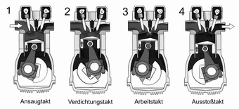 Das Bild gehört zur Serie „Ottomotor“. Es verdeutlicht die Funktionsweise eines 4-Takt-Ottomotors. Bild-Variante: s/w. Es gelten die Nutzungsbedingungen der Mediothek und Pixiothek.