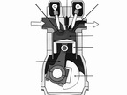 Das Bild gehört zur Serie „Ottomotor“. Es verdeutlicht die Funktionsweise eines 4-Takt-Ottomotors. Bild-Variante: farbig, mit Text. Es gelten die Nutzungsbedingungen der Mediothek und Pixiothek.