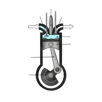 Das Bild gehört zur Serie „Dieselmotor“. Es zeigt den typischen Aufbau eines 4-Takt-Dieselmotors. Bild-Variante: farbig; unbeschriftet. Es gelten die Nutzungsbedingungen der Mediothek und Pixiothek.