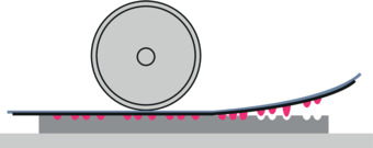 Der Druck wird von der Platte mit feuchtem Kupferdruckpapier oder alternativ Aquarellpapier auf der Tiefdruckpresse abgezogen.