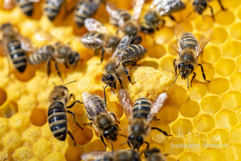 Bienenkönigin umringt von Arbeiterinnen