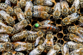 Bienenkönigin umringt von Arbeiterinnen