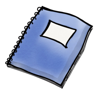 Das Bild zeigt ein gezeichnetes blaues Heft. Das Bild ist unter CC0 lizenziert und kann somit frei verwendet werden. Es ist neben weiteren Bildern auch hier zu finden: https://moodlelab.moodleschule.de/