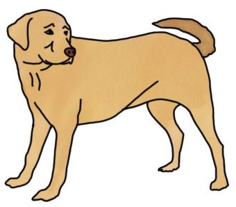 Das Bild zeigt einen gezeichneten Hund. Das Bild ist unter CC0 lizenziert und kann somit frei verwendet werden. Es ist neben weiteren Bildern auch hier zu finden: https://moodlelab.moodleschule.de/