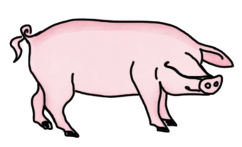Das Bild zeigt ein gezeichnetes Hausschwein. Das Bild ist unter CC0 lizenziert und kann somit frei verwendet werden. Es ist neben weiteren Bildern auch hier zu finden: https://moodlelab.moodleschule.de/