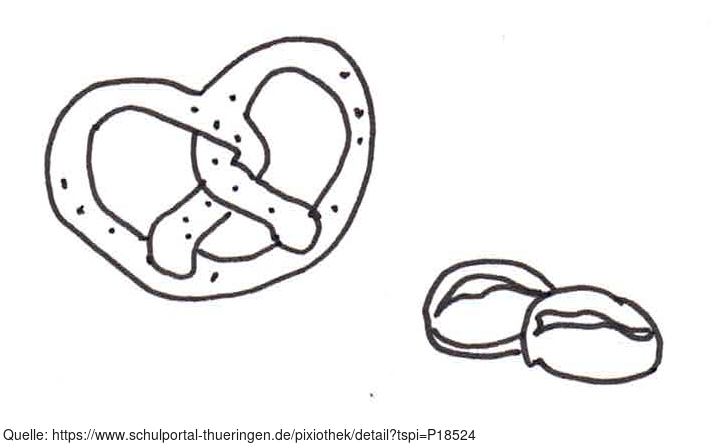 Das Bild zeigt eine gezeichnete Brezel und zwei Brötchen (s/w). Es gehört zur Serie "Ernährungspyramide zum Basteln und Gestalten" und findet u.a. im gleichnamigen Lernobjekt unter https://www.schulportal-thueringen.de/web/guest/media/detail?tspi=18517 Verwendung. Es gelten die Nutzungsbedingungen der Mediothek und Pixiothek.