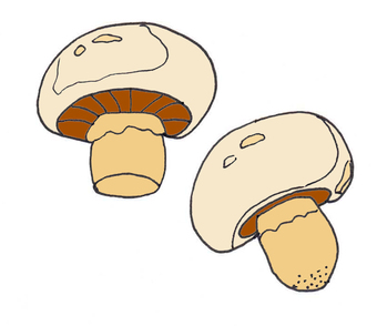 Das Bild zeigt zwei gezeichnete Pilze (farbig). Es gehört zur Serie "Ernährungspyramide zum Basteln und Gestalten" und findet u.a. im gleichnamigen Lernobjekt unter https://www.schulportal-thueringen.de/web/guest/media/detail?tspi=18517 Verwendung. Es gelten die Nutzungsbedingungen der Mediothek und Pixiothek.