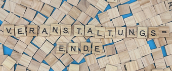 Aus Buchstaben wurde das Wort "Veranstaltungsende" gelegt. Es gelten die Nutzungsbedingungen der Mediothek und Pixiothek.