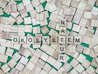 Aus Buchstaben wurden die Begriffe "Ökosystem" und "Natur" gelegt. Es gelten die Nutzungsbedingungen der Mediothek und Pixiothek.