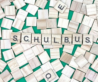 Aus Buchstaben wurde der Begriff „Schulbus" gelegt. Es gelten die Nutzungsbedingungen der Mediothek und Pixiothek.