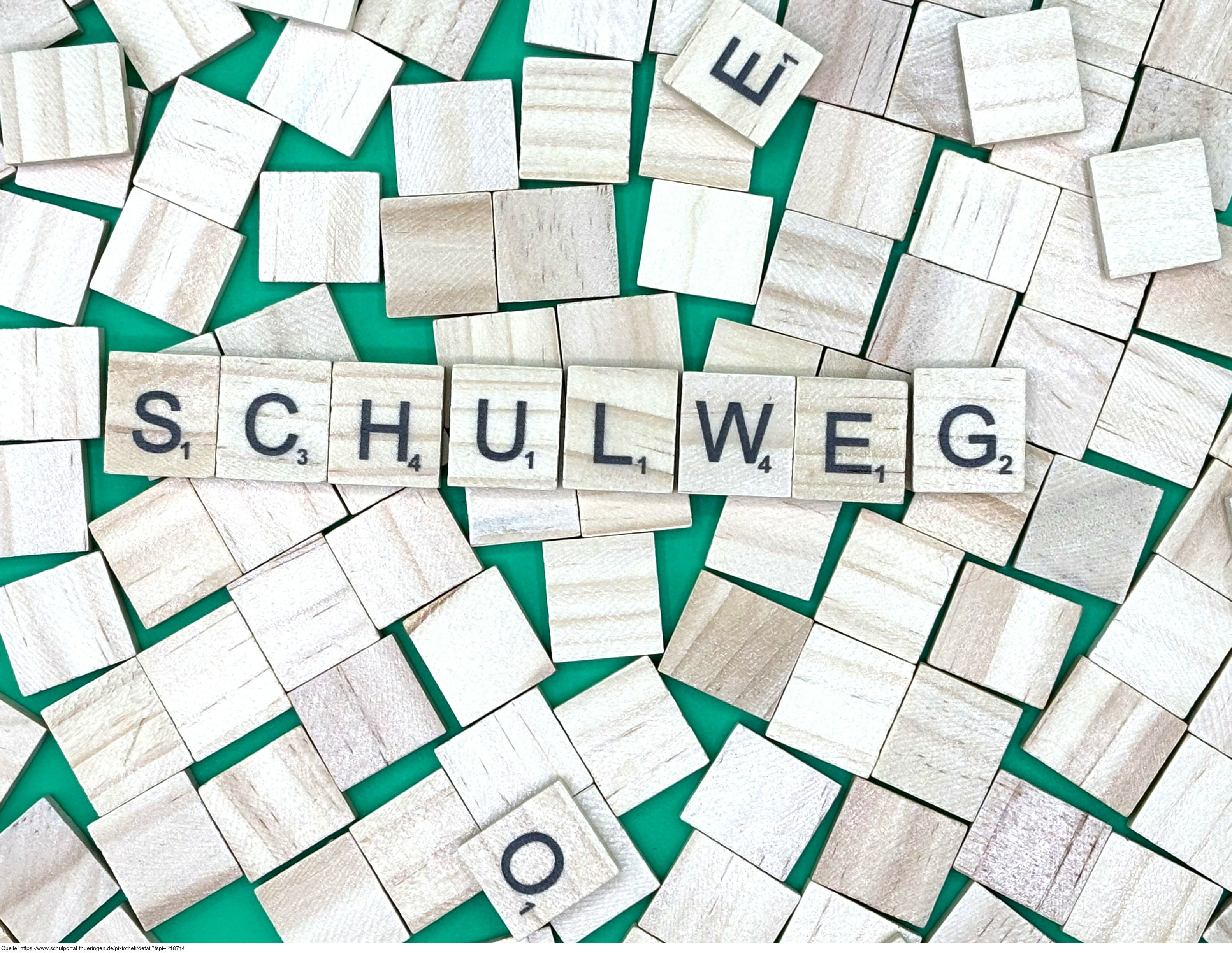 Aus Buchstaben wurde der Begriff „Schulweg" gelegt. Es gelten die Nutzungsbedingungen der Mediothek und Pixiothek.