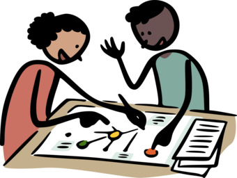 Die Zeichnung zeigt eine symbolhafte Szene zur Darstellung von Kollaboration bzw. Zusammenarbeit. Das Bild ist unter CC0 lizenziert und kann somit frei verwendet werden. Es ist neben weiteren Bildern auch hier zu finden: https://cocomaterial.com