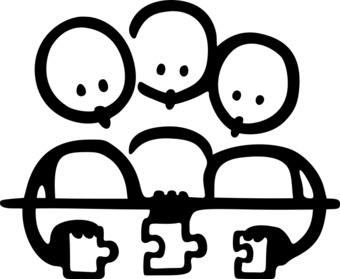 Die Zeichnung zeigt eine symbolhafte Szene zur Darstellung von Gruppenarbeit. Das Bild ist unter CC0 lizenziert und kann somit frei verwendet werden. Es ist neben weiteren Bildern auch hier zu finden: https://cocomaterial.com