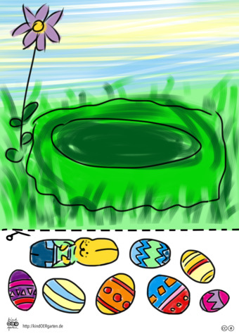 Das Bild zeigt eine Osternest(farbig) und kann als Schnipselbildvorlage für Kinder im Kindergarten bzw. Elementarbereich dienen. Das Bild ist unter CC0 lizenziert und kann somit frei verwendet werden. Es ist neben weiteren Bildern auch hier zu finden: https://kindoergarten.wordpress.com/