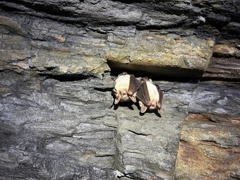 Das Bild zeigt Große Mausohren (Fledermausart) in einem Schieferstollen. Es gelten die Nutzungsbedingungen der Mediothek und Pixiothek.