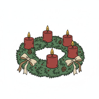 Das Bild zeigt einen gezeichneten Adventskranz. Das Bild wurde mittels einer KI (Gemini) erstellt und ist unter CC0 lizenziert. Weitere Bilder aus Herrn Emrich-Försters Bild-Archiv findet man hier: https://pix.foerster.rocks/