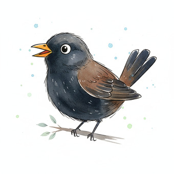 Das Bild zeigt eine gezeichnete Amsel. Das Bild wurde mittels einer KI (Gemini) erstellt und ist unter CC0 lizenziert. Weitere Bilder aus Herrn Emrich-Försters Bild-Archiv findet man hier: https://pix.foerster.rocks/