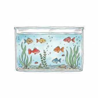 Das Bild zeigt ein gezeichnetes Aquarium. Das Bild wurde mittels einer KI (Gemini) erstellt und ist unter CC0 lizenziert. Weitere Bilder aus Herrn Emrich-Försters Bild-Archiv findet man hier: https://pix.foerster.rocks/