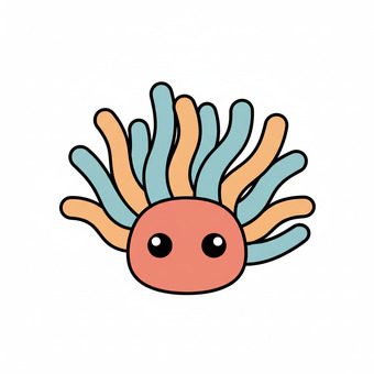 Das Bild zeigt eine gezeichnete Anemone, Seeanemone. Das Bild wurde mittels einer KI (Gemini) erstellt und ist unter CC0 lizenziert. Weitere Bilder aus Herrn Emrich-Försters Bild-Archiv findet man hier: https://pix.foerster.rocks/