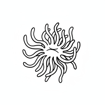 Das Bild zeigt eine gezeichnete Anemone, Seeanemone. Das Bild wurde mittels einer KI (Gemini) erstellt und ist unter CC0 lizenziert. Weitere Bilder aus Herrn Emrich-Försters Bild-Archiv findet man hier: https://pix.foerster.rocks/