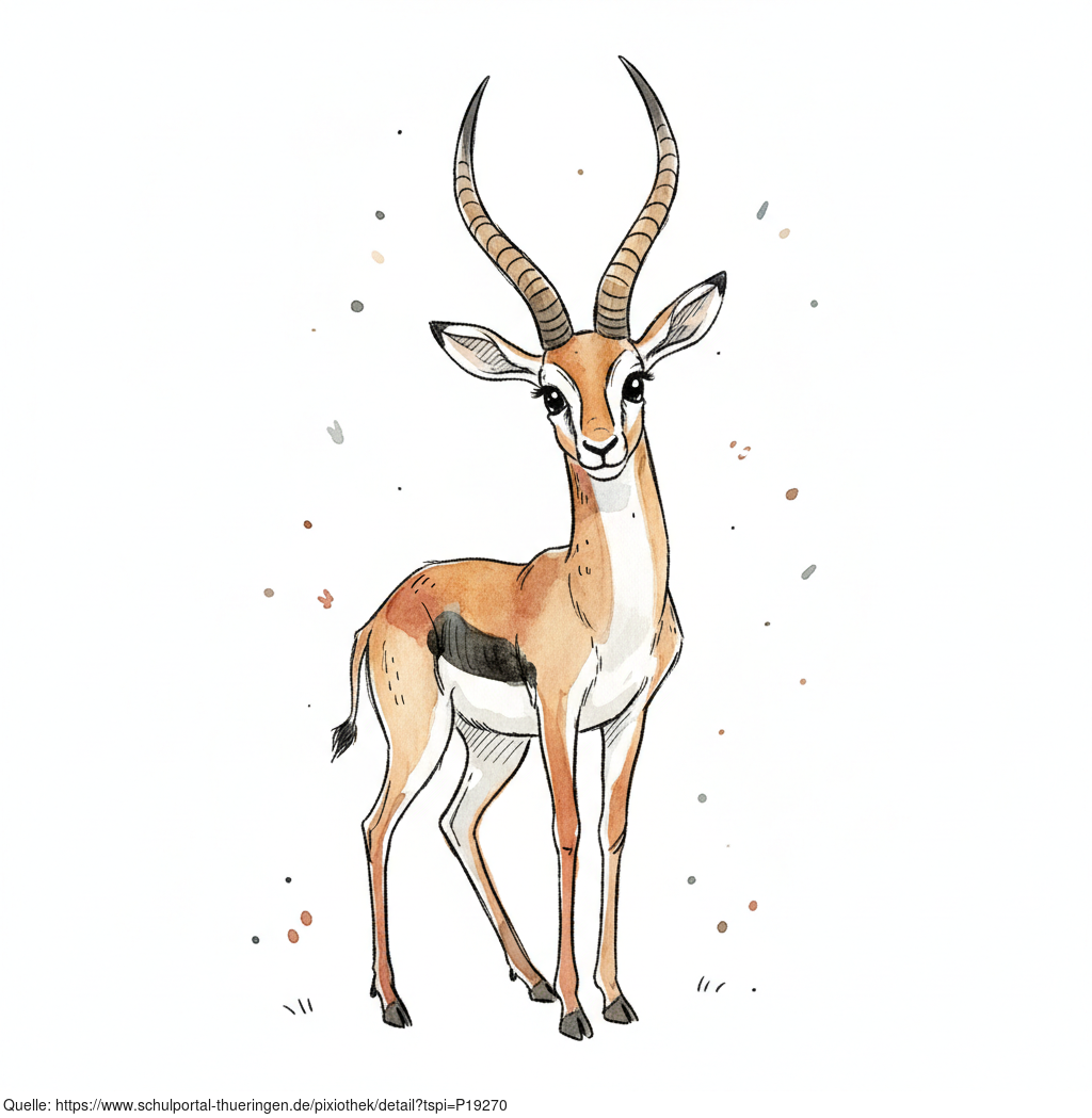 Das Bild zeigt eine gezeichnete Antilope. Das Bild wurde mittels einer KI (Gemini) erstellt und ist unter CC0 lizenziert. Weitere Bilder aus Herrn Emrich-Försters Bild-Archiv findet man hier: https://pix.foerster.rocks/