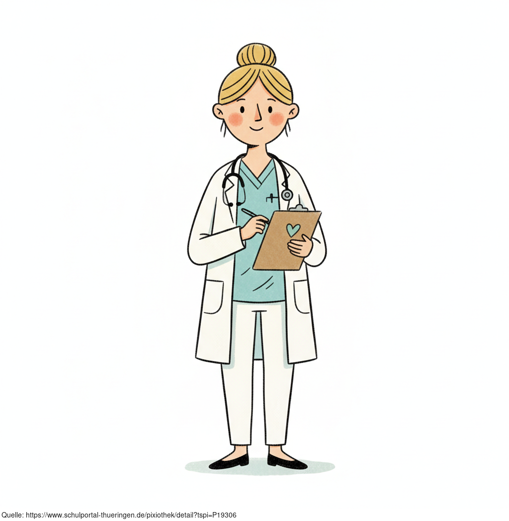 Das Bild zeigt eine gezeichnete Ärztin mit Stethoskop. Das Bild wurde mittels einer KI (Gemini) erstellt und ist unter CC0 lizenziert. Weitere Bilder aus Herrn Emrich-Försters Bild-Archiv findet man hier: https://pix.foerster.rocks/