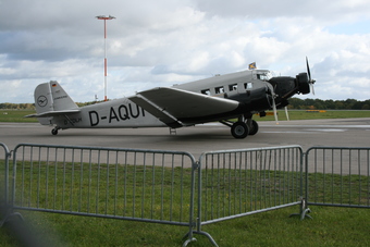 Das Foto gehört zu einer Serie mit Fotos der Junkers Ju 52 (Spitzname Tante Ju) mit dem Namen "Berlin-Tempelhof" auf dem Flughafengelände Lübeck. Das Flugzeug ist ein restauriertes Produkt der Junkers Flugzeugwerk AG Dessau aus dem Jahr 1936.