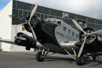 Das Foto gehört zu einer Serie mit Fotos der Junkers Ju 52 (Spitzname Tante Ju) mit dem Namen "Berlin-Tempelhof" auf dem Flughafengelände Lübeck. Das Flugzeug ist ein restauriertes Produkt der Junkers Flugzeugwerk AG Dessau aus dem Jahr 1936.