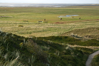Spiekeroog: Marschlandschaft mit Pferden