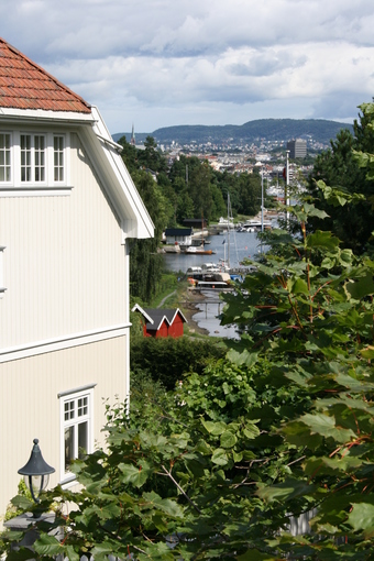 Abgebildet ist eine Stadtansicht aus Richtung Bygdoy.