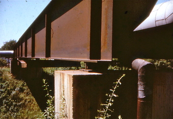 Abgebildet ist die Brückenrollenlagerung zum Ausgleich der Längenausdehnung einer Brücke zur Überführung einer Warmwasserfernleitung.