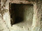 Externsteine im Teutoburger Wald: Bodenvertiefung (vermutlich Feuerstelle) in der Grotte