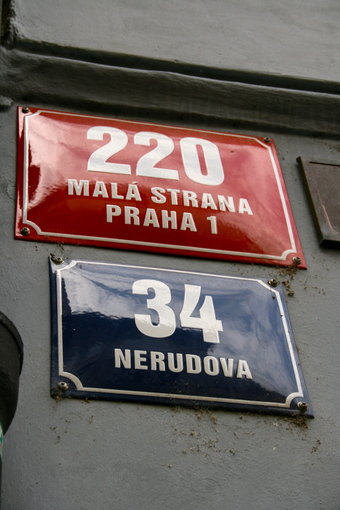 Prag: Rote und blaue Hausnummern in der Nerudagasse