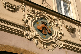 Das Foto gehört zur Serie "Prag" (Teil: Prager Burg und Kleinseite). Es zeigt ein Hauszeichen (Zu den drei Geigen) in der Nerudagasse. Die Nerudagasse war in der Vergangenheit der Hauptweg zur Prager Burg. Es gelten die Nutzungsbedingungen der Mediothek und Pixiothek.