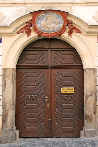 Das Foto gehört zur Serie "Prag" (Teil: Prager Burg und Kleinseite). Es zeigt Eingang vom Haus "Zum Weißen Schwan" in der Nerudagasse. Die Nerudagasse war in der Vergangenheit der Hauptweg zur Prager Burg. Es gelten die Nutzungsbedingungen der Mediothek und Pixiothek.