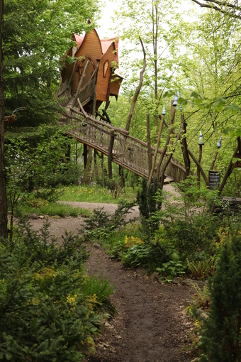 Das Foto gehört zur Serie "Feenweltchen im Feengrottenpark Saalfeld". Es zeigt den Weg zum Feenwipfelschloss. Es gelten die Nutzungsbedingungen der Mediothek und Pixiothek.