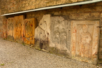 Klosterruine Paulinzella: Grabplatten im Seitenschiff