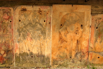 Das Foto gehört zur Serie "Klosterruine Paulinzella". Es zeigt eine Grabplatte. - - Es gelten die Hinweis für Bilder mit Motiven von Stiftungsobjekten der Stiftung Thüringer Schlösser und Gärten: Es gilt grundsätzlich, dass die Bilder ausschließlich zur Bereitstellung für Unterrichtszwecke verwendet werden dürfen. Jede Art der darüber hinausgehenden Publikation der von einem Standort innerhalb der Stiftungs-Liegenschaften aufgenommenen Motive bedarf einer gesonderten schriftlichen Genehmigung durch die Stiftung Thüringer Schlösser und Gärten.