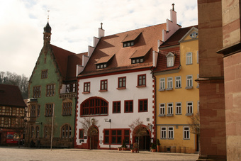 Das Foto gehört zur Serie "Schmalkalden". Es zeigt das Rathaus am Altmarkt der Stadt in Thüringen. Es gelten die Nutzungsbedingungen der Mediothek und Pixiothek.