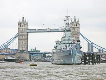 Das Foto gehört zur Serie London 2016. Es zeigt die Tower Bridge und die HMS Belfast. Es gelten die Nutzungsbedingungen der Mediothek und Pixiothek.