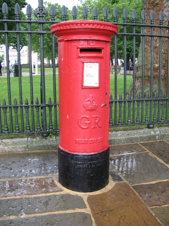 Das Foto gehört zur Serie London 2016. Es zeigt einen Briefkasten (mailbox, letter box, post box, pillar box). Es gelten die Nutzungsbedingungen der Mediothek und Pixiothek.