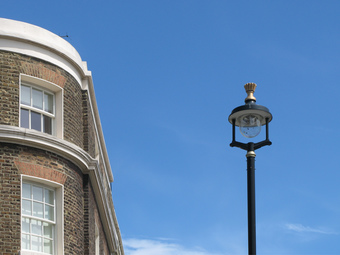 Das Foto gehört zur Serie London 2016. Es zeigt eine Straßenbeleuchtung mit Krone. Es gelten die Nutzungsbedingungen der Mediothek und Pixiothek.