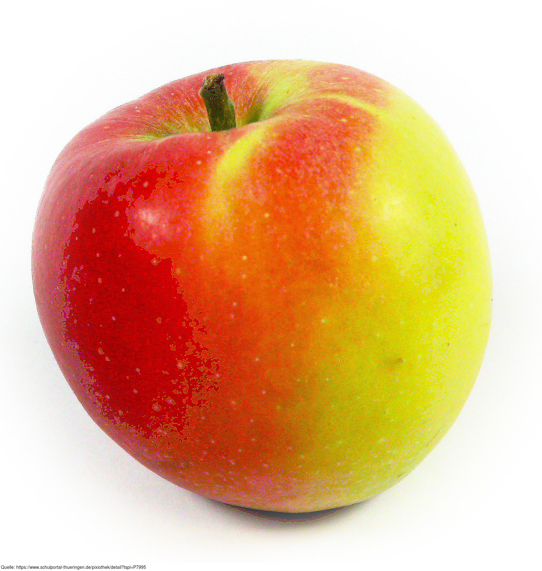 Das Foto gehört zur Serie Obst. Es zeigt einen Tafelapfel der Sorte Nicoter, eine Kreuzung aus Gala und Braeburn. Es gelten die Nutzungsbedingungen der Mediothek und Pixiothek.